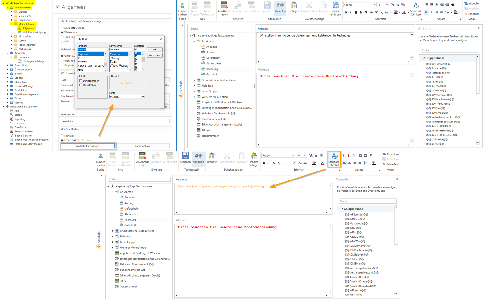 • Die Logik, dass die Schrifteinstellungen aus den Mailvorlagen übernommen werden, wurde angepasst.