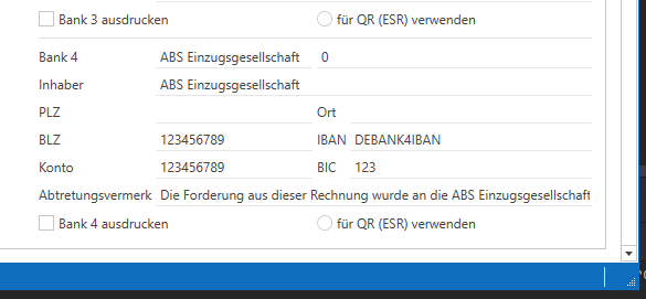 In der Mandantenverwaltung können für die Bankverbindungen 1–4 nun Abtretungsvermerke hinterlegt werden.
