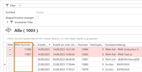 In den Ticketübersicht/en wurde die Spalte "RMA-Nummer" hinzugefügt. Diese Spalte ist standardmäßig ausgeblendet, kann jedoch über den Spalteneditor (durch Rechtsklick auf eine Spaltenüberschrift) eingeblendet werden.