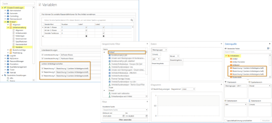 Die Auswertung im Vertriebsbereich des "Analytics"-Moduls wurde um die drei variablen Artikelfelder, die von Ihnen selbst unter "Globale Einstellungen - Einkauf - Artikelverwaltung - Variablen" in der Gruppe "weitere Artikeleigenschaften" benannt werden können, erweitert.