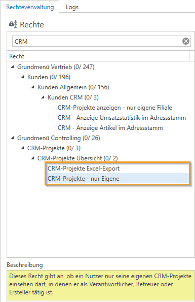 Es wurde ein neues Recht eingebaut das unter Rechteverwaltung -> CRM-Projekte -> CRM-Projekte Übersicht -> CRM-Projekte Excel exportieren zu finden ist und nur denjenigen mit dem Recht es ermöglicht die CRM-Projekte in Excel zu exportieren. (Admins haben standardmäßig das Recht, die CRM-Projektliste zu exportieren. Anderen Mitarbeitern muss dieses Recht nun explizit zugewiesen werden.)