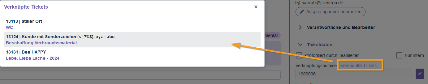 - In den Ticketdetails lässt sich nun eine Liste der verknüpften Tickets anzeigen.