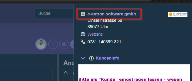 Durch einen Klick auf den Kundennamen öffnet sich sofort der zugehörige Kundenbereich im ServiceBoard – z. B. um direkt zu den Tickets dieses Kunden zu springen.