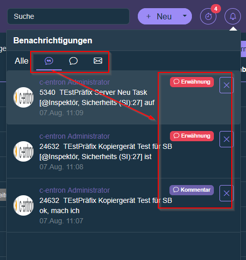 Zusätzlich lassen sich die Benachrichtigungen jetzt nach verschiedenen Kategorien filtern:
