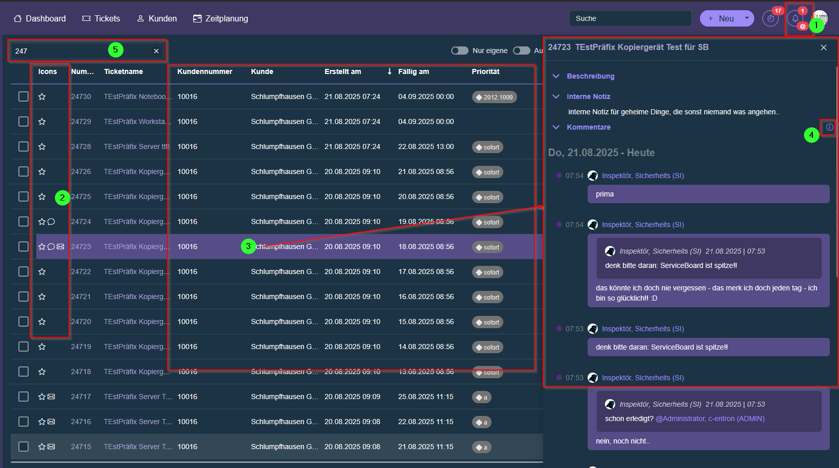 Die Ticketübersicht wurde mit verschiedenen sinnvollen Funktionen erweitert, die Dir eine bessere Orientierung und effizientere Arbeit ermöglichen.