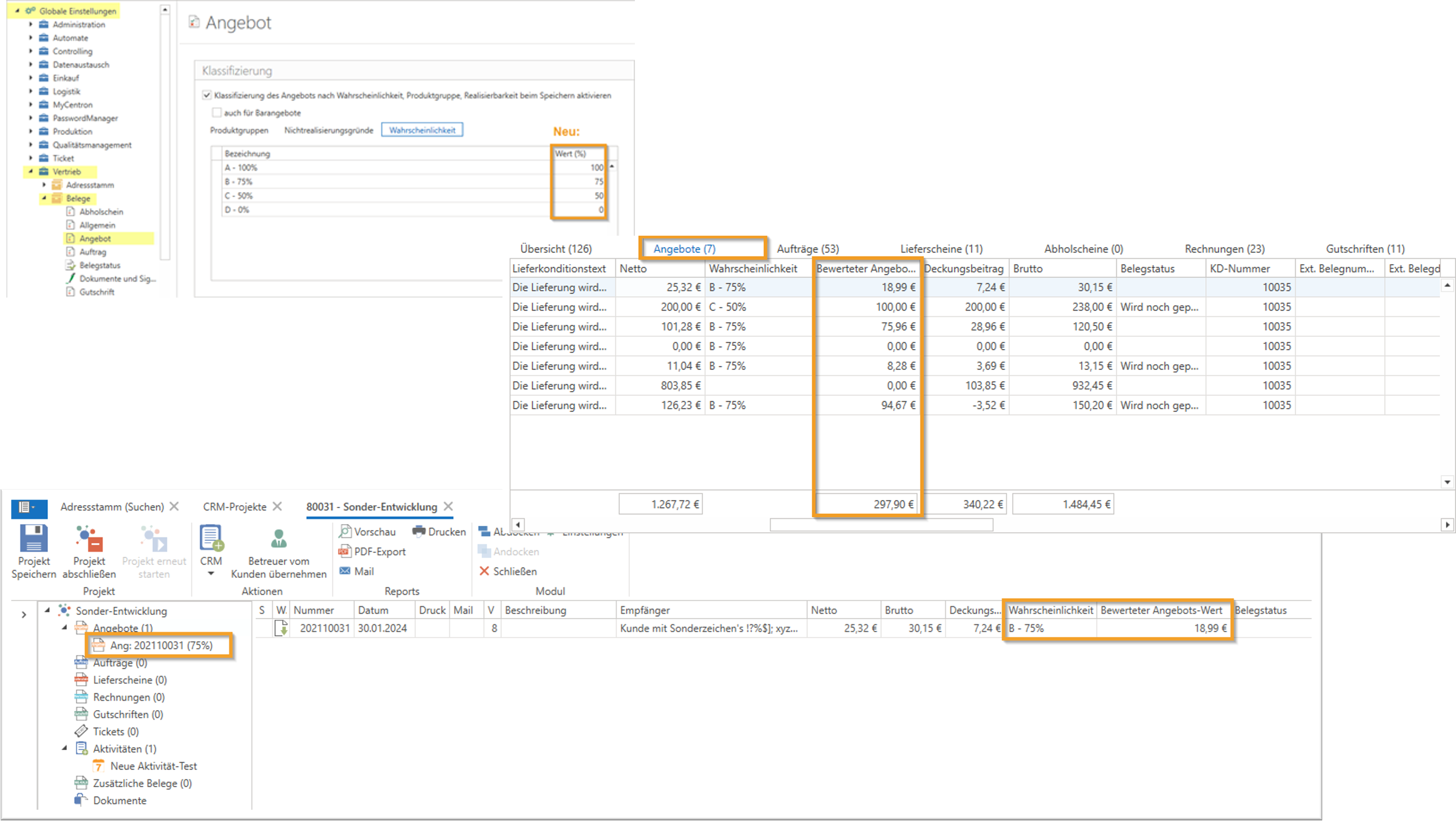 Angebot - Funktionalität "Wahrscheinlichkeit" um Wert erweitert