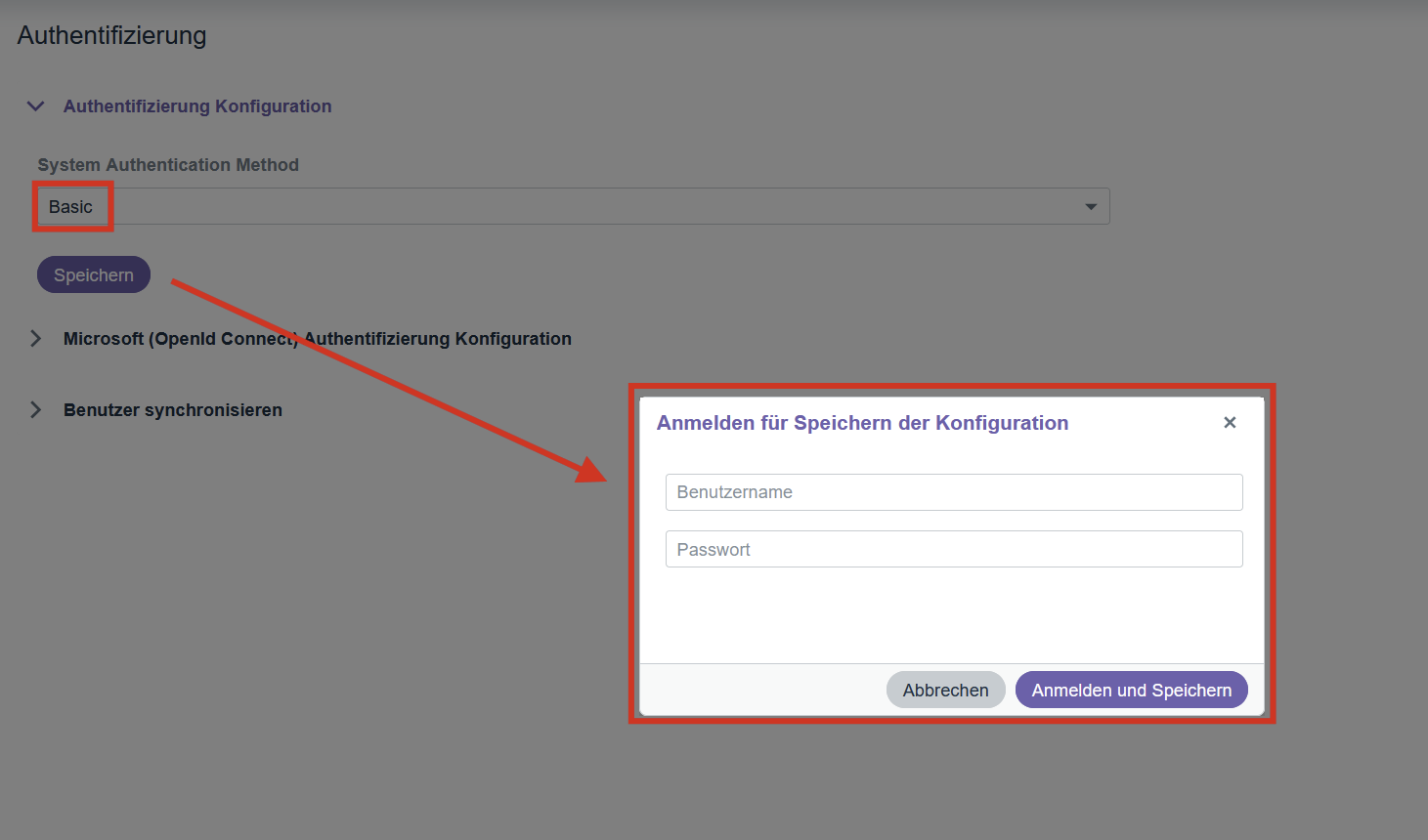 Diese erneute Authentifizierung ist erforderlich, um zu verhindern, dass Benutzer vom Zugriff auf das System ausgeschlossen werden. Nachdem Sie den Benutzernamen und das Passwort eingegeben und auf Speichern geklickt haben, wird die Systemauthentifizierungsmethode aktualisiert.