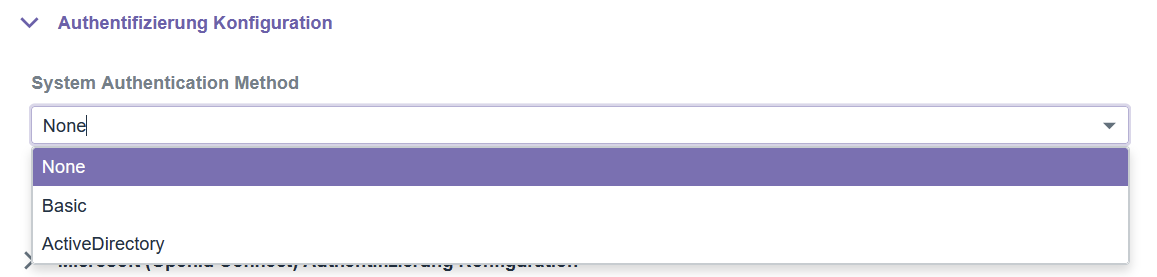 In diesem Fall gibt es keine Standardmethode, und jede Methode (Basic, ActiveDirectory, Microsoft) kann für die Anmeldung verwendet werden.