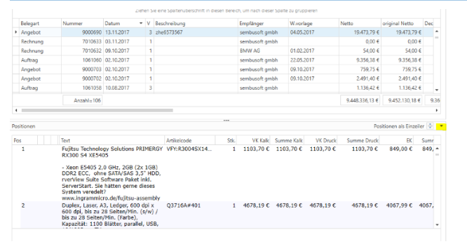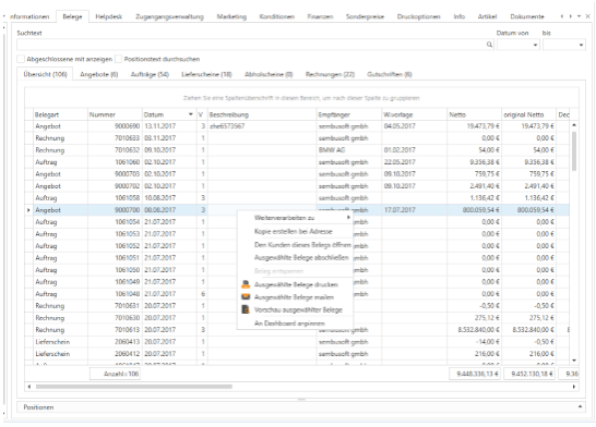 Ebenso können sie auch mehrere Belege mit STRG-Taste oder SHIFT Taste markieren und alle diese entweder drucken, mailen oder sich in der Vorschau anzeigen lassen.