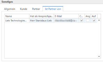 Wenn ein Konto geladen wird, dass bei anderen Konten als Partner hinterlegt ist, erscheint ein weiterer Tab Ist Partner von.