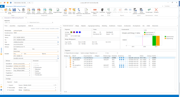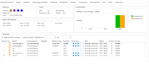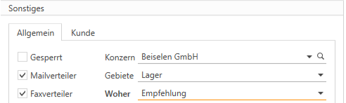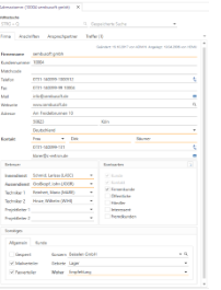 Wenn die ausgewählte Adresse ein Kunde ist erscheint noch eine zweite Registerkarte ganz unten „Kunde“.