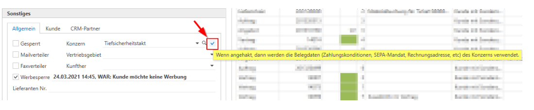 Die Einstellungen des Kunden werden dabei nicht berücksichtigt, d. h. egal was bei diesem Kunden eingestellt ist, es werden die Daten vom Konzern herangezogen)