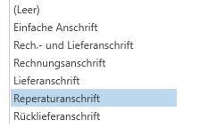 Über das Feld „Art“ kann die Anschriftenart festgelegt werden. Hier kann zwischen mehreren Arten gewählt werden: