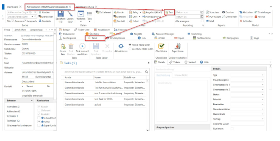Somit kann nun künftig im Adressstamm beim jeweiligen Kunde ein neuer Task angelegt oder bestehende Tasks geändert oder gelöscht werden.