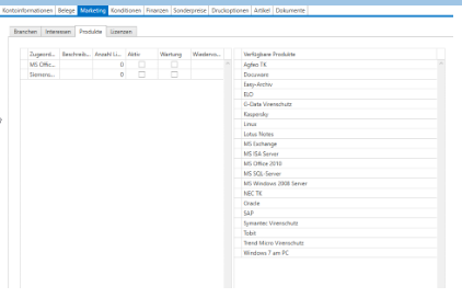Das gleiche Prinzip wie bei Branchen und Interessen gilt auch bei den Produkten. Hier können Sie Produkte hinterlegen die nicht aus ihrem Portfolio stammen, die sie nicht über c-entron an den Kunden verkauft haben. Auch diese Liste ist in den Einstellungen mit Adminrechten individuell gestaltbar.