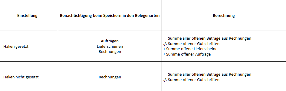 Die Kreditlimit-Warnung arbeitet aktuell wie folgt: