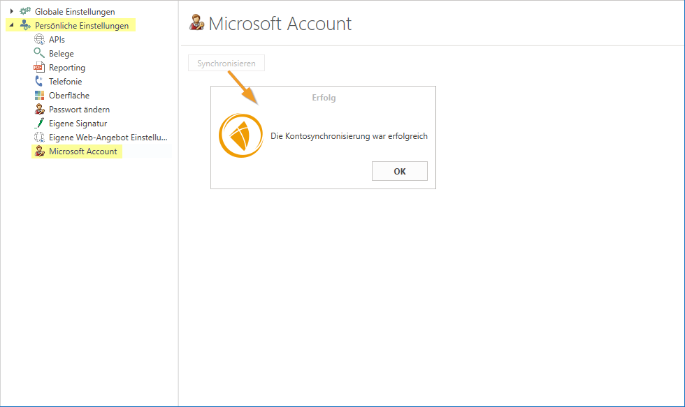 Aktuell ist die Verknüpfung der Microsoft-Authentifizierung für jeden Benutzer individuell durchzuführen. Jeder Benutzer muss sein Konto manuell synchronisieren, um die Microsoft-Anmeldung nutzen zu können.