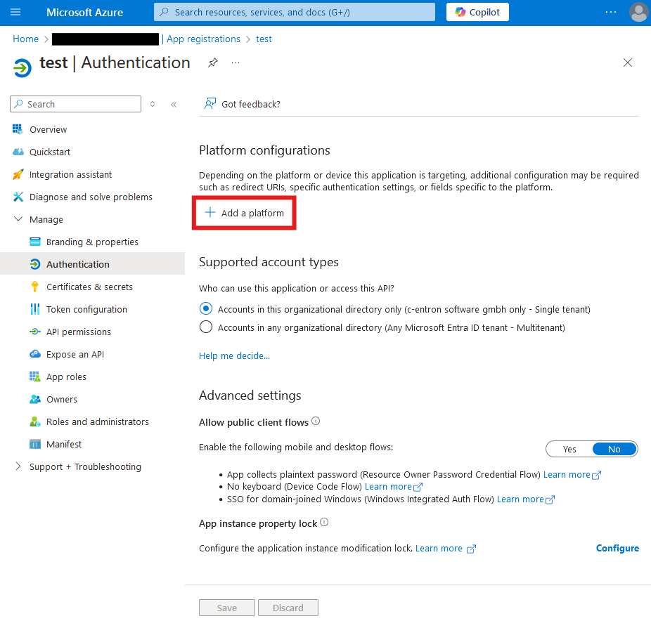 Aktivierung des Microsoft Entra Logins in c-entron