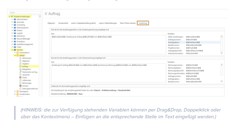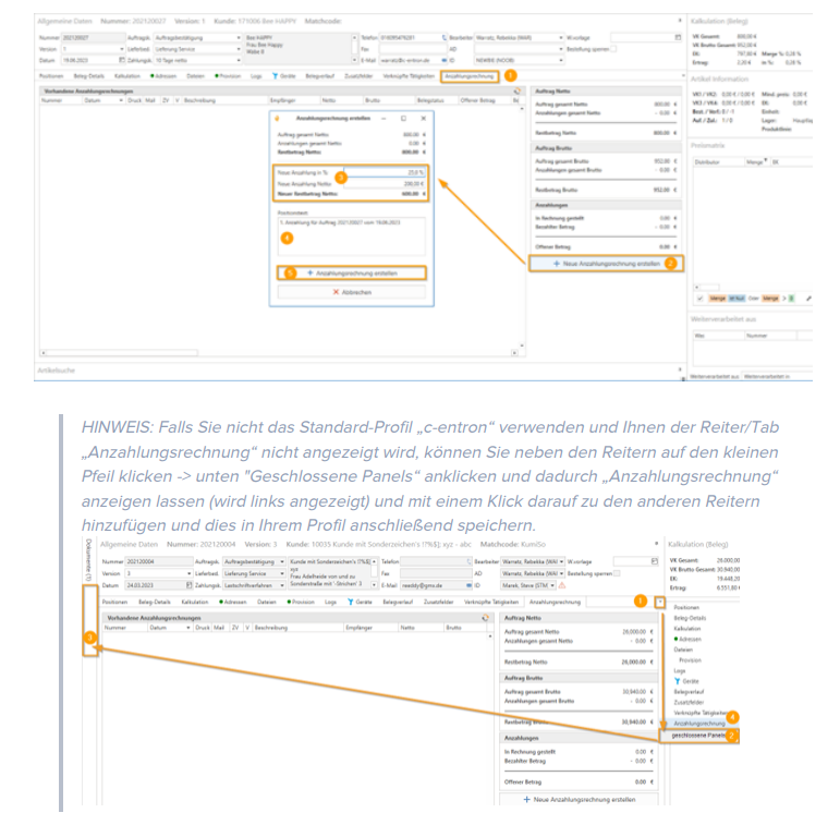 Anzahlungsmodul - Anzahlungsrechnungen im Auftrag
