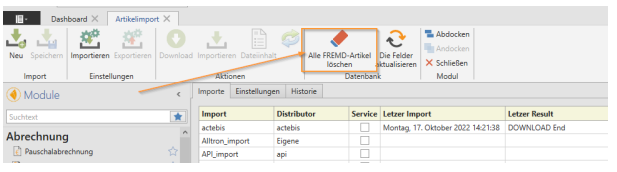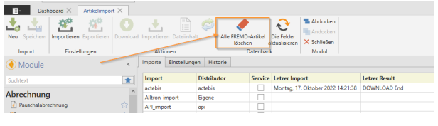 Der Button [Alle FREMD-Artikel löschen] im Artikelimport