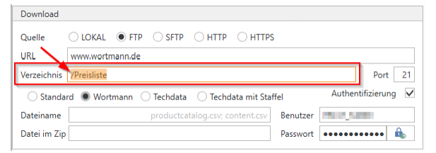Lösung:Beim FTP Server war das Unterverzeichnis „/Preisliste“ (bei Wortmann) nicht angegeben, somit konnte die angegebene Datei nicht gefunden, also auch nicht heruntergeladen werden.