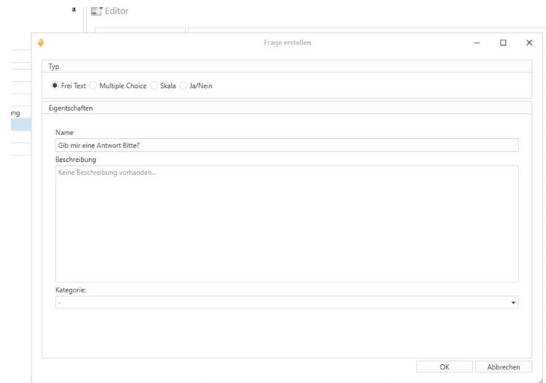 - ·Name: Hier wird die Frage, die gestellt werden soll, eingetragen.