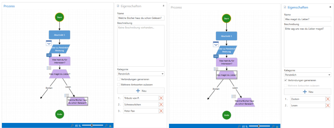 - ·Default: Weder Verbindungen generieren noch mehrere Antworten ist angehakt, somit ist nur eine Antwortmöglichkeit möglich.