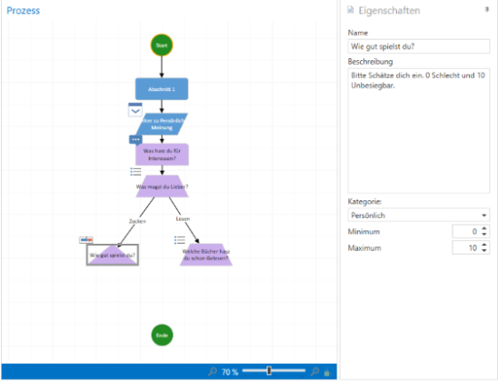 Diese wird dann zu einem grafischen Frageelement gewandelt und der Prozessgrafik hinzugefügt.