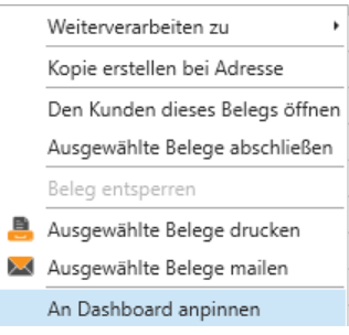 Zudem haben Sie die Möglichkeit Belege (Angebot, Auftrag, Lieferschein, Rechnung, Gutschrift) an das Dashboard anpinnen.