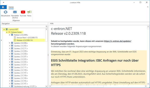 Integration von c-entra in die integrierte Hilfe