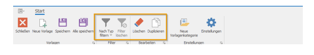 Schon vordefinierte Vorlagen können Sie über die Menüleiste duplizieren, löschen oder filtern:
