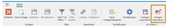 Ähnlich verhält sich die Import-Funktion, Sie erhalten einen Windowsdialog wo Sie die Datei auswählen können. Schon haben Sie die entsprechende Vorlage verfügbar.