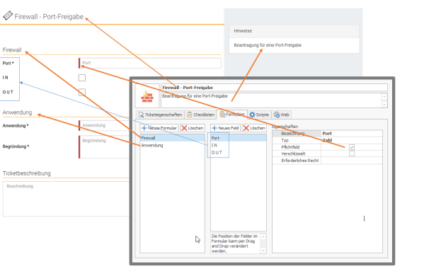 Wichtig! Ein nachträgliches Ändern von Formularen wirkt sich immer nur auf neu erstellte Formularversionen aus, schon angelegte Tickets mit Formularen sind von diesen Änderungen nicht betroffen.
