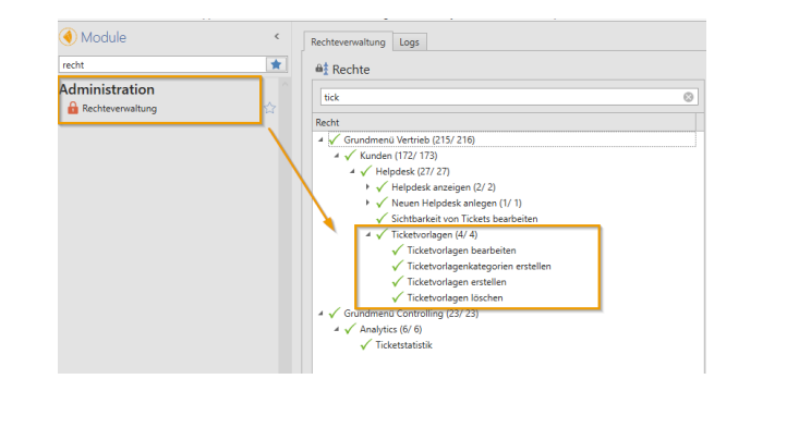 Dieses Recht ist an die .NET Rechteverwaltung gekoppelt und zeigt Ihnen den üblichen Rechtebaum der .NET an:
