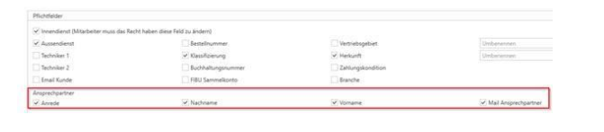 Diese Pflichtfelder werden bei der Anlage neuer Ansprechpartner und Bearbeitung bestehender Ansprechpartner überprüft.