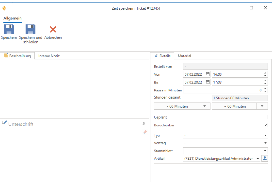 • Zeit für das Ticket erfassen