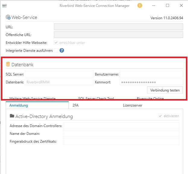 Hinterlege die Zugangsdaten der neuen Datenbank im WebService.