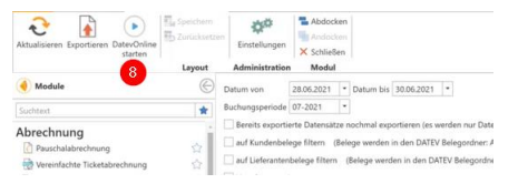 Das Modul „DATEVconnect online“ finden Sie in den Modulen unter Buchhaltung/Finanzen.