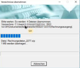Mit der Schaltfläche „Zugang überwachen“ (11) kann der Upload rhythmisiert automatisch vorgenommen werden, d.h. die BelegTransfer.exe prüft zyklisch die aktivierten Verzeichnisse und lädt neue Dateien selbstständig hoch.