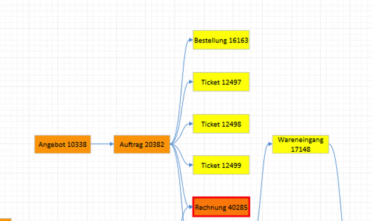 Die Anzeige aus welchen Belegen und in welche Belege weiterverarbeitet wurde, im Beispiel hier aus einem Lieferschein in eine Rechnung.