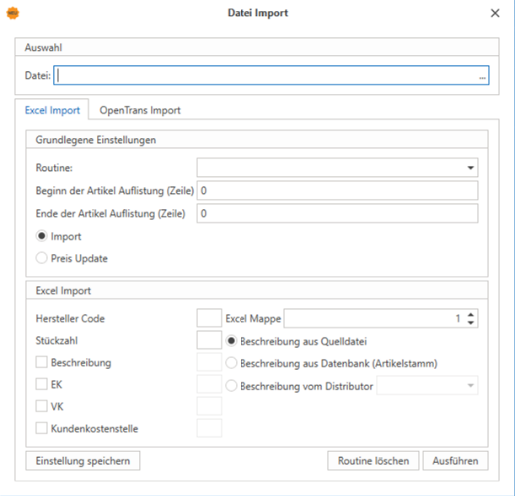 Über „Daten importieren“ können hier Excel oder OpenTrans Dateien importiert werden.
