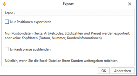 Des Weiteren kann der Beleg in eine Excel Datei exportiert werden.