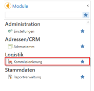 Das Modul „Kommissionierung“ befindet sich links unter der Kategorie „Logistik“