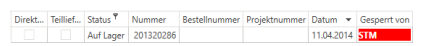 Gesperrte Aufträge (zu erkennen an dem in roten gefassten Kürzel) können nicht kommissioniert werden.