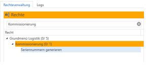 Um das Modul Kommissionierung sehen zu können wird das Recht „Grundmenü Logistik“ und Kommissionierung benötigt