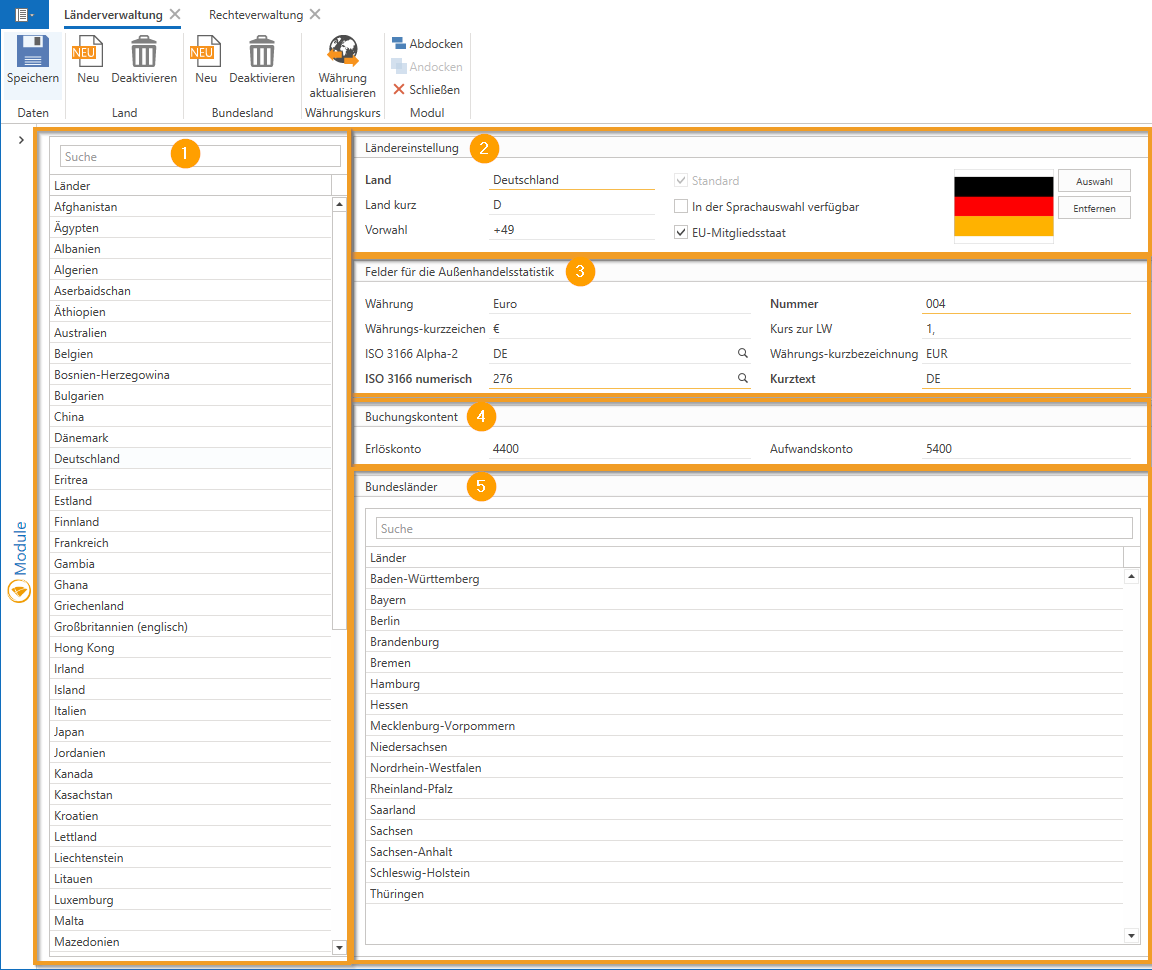 Modul Länderverwaltung: