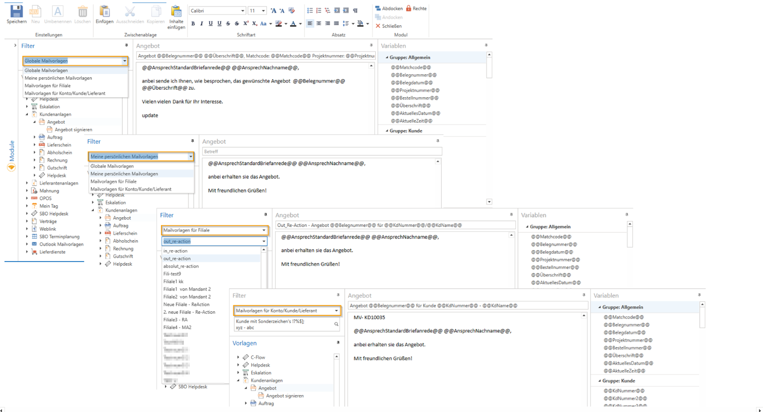 Das Modul „Mailvorlagen“ wurde überarbeitet und um „Persönliche Mailvorlagen“ erweitert.