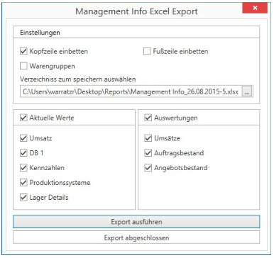 Excel Export mit diversen Auswahlmöglichkeiten