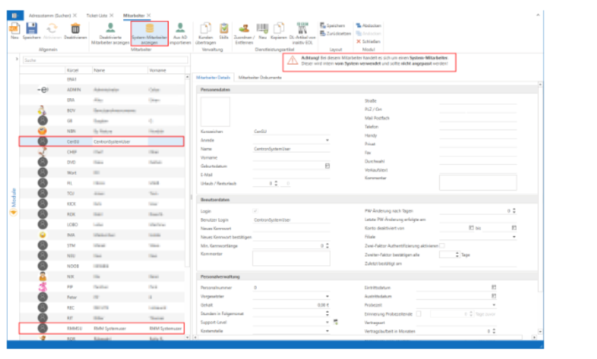 Systemuser in der Mitarbeiter-Verwaltung standardmäßig ausgeblendet