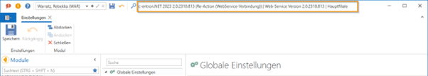 Im oberen Bereich finden Sie Informationen zu den Versionen von c-entron und dem WebService.